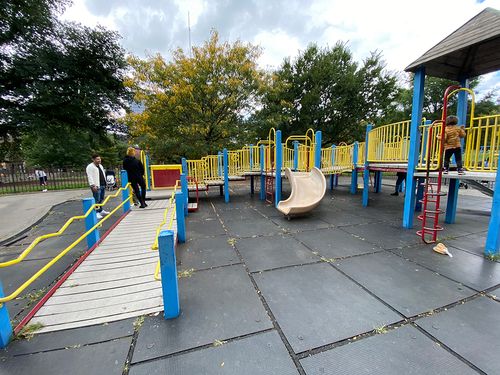 The appeal of this little playground is as a waystation to the bigger park area. The playground equipment is definitely meant for children on the younger side. The simple layout is easy for younger children to get around on, especially because there is a ramp for access to the climbing structure.